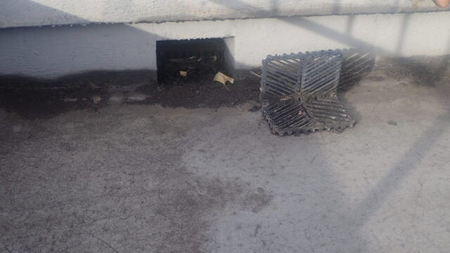 お知らせたまには、建物の屋上に上がって状況確認してみませんか!1年に1回位、ドレイン(排水管)の廻りの清掃をしましょう。清掃すれば、水の流れが良くなり雨漏りがしずらくなり多少防水のじみょうが伸びますよ。